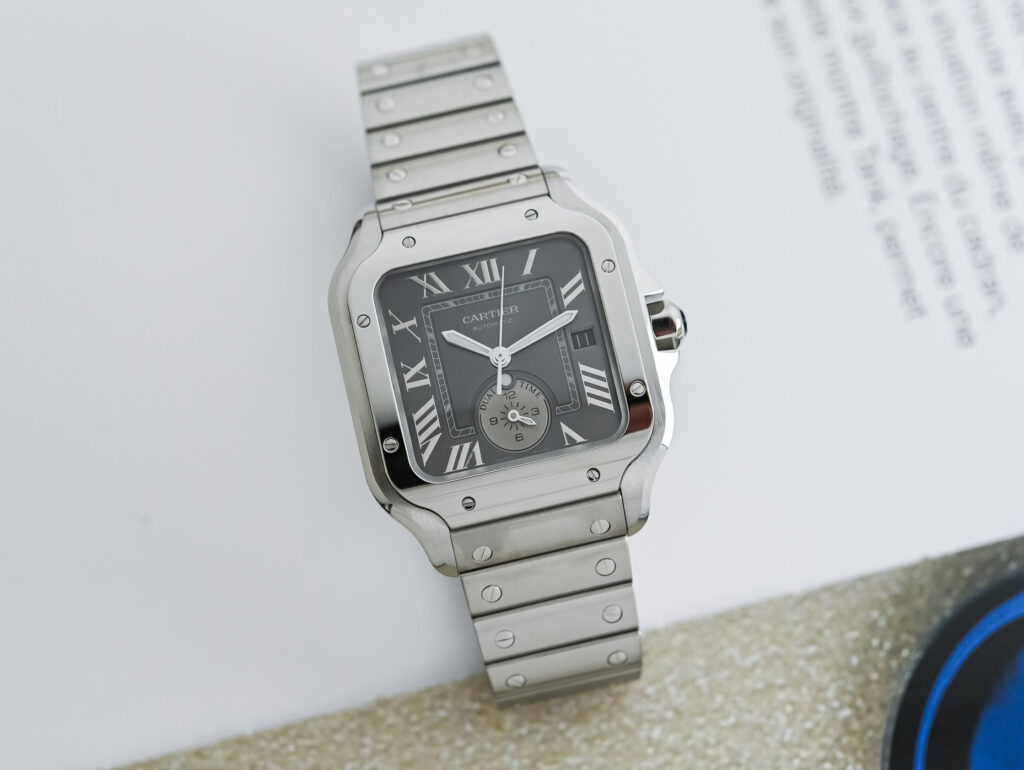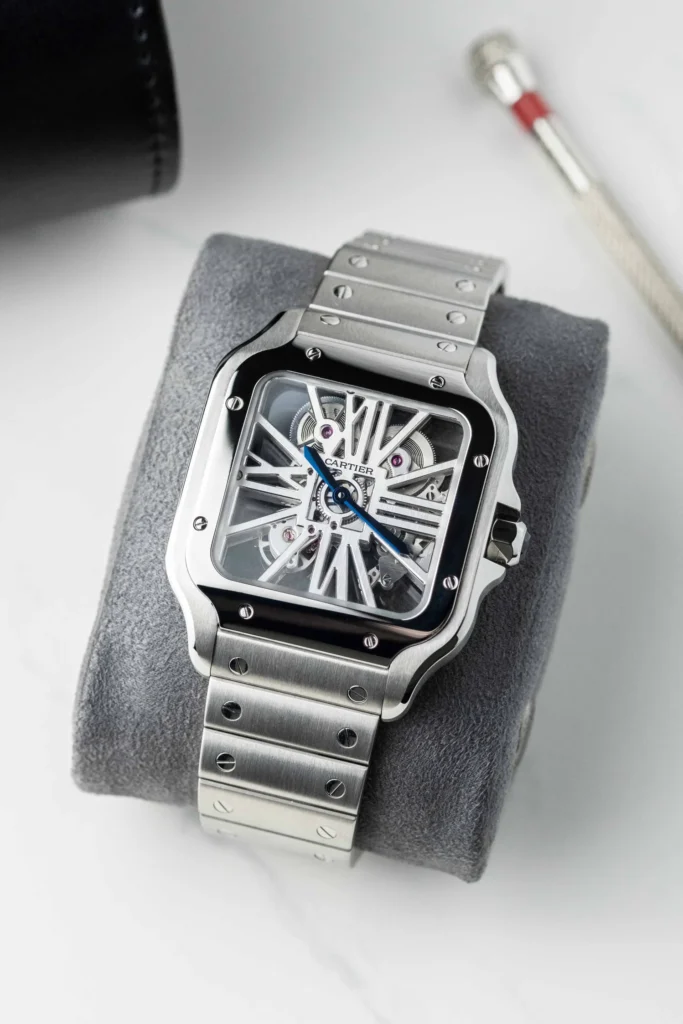 The design of the Cartier Santos has a timeless quality. While other watches may chase trends, the Santos remains true to its heritage. Its square case, Roman numerals, and signature screws ensure that it never goes out of style.