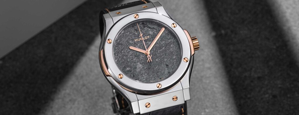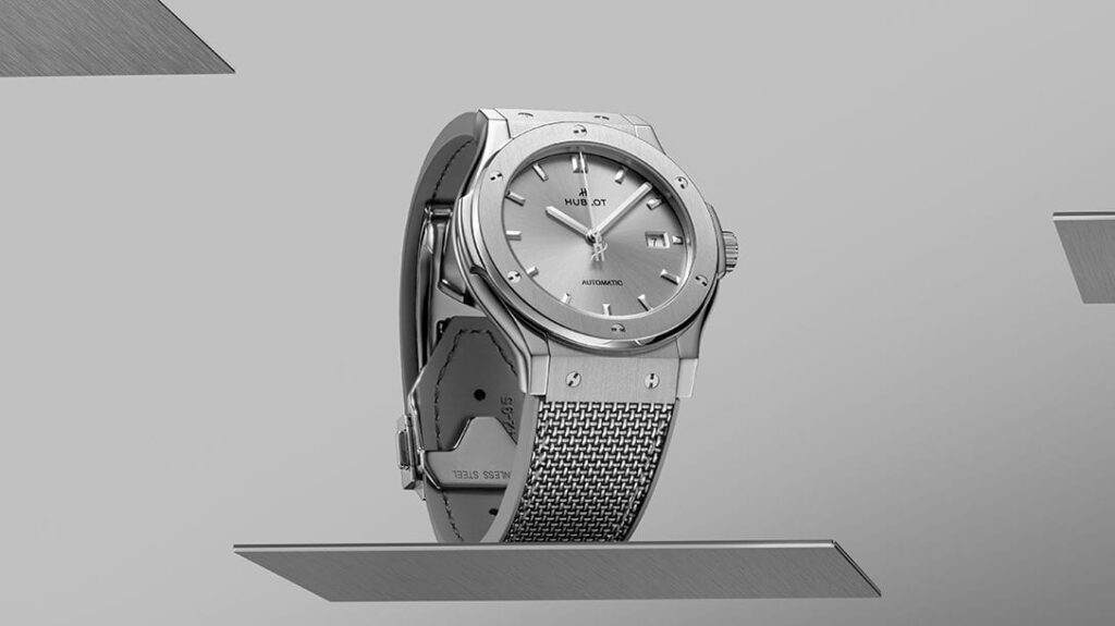 The Classic Fusion collection debuted in 2008 as a more understated option compared to the brand’s louder creations. While the Big Bang collection represents power and boldness, the Classic Fusion offers a minimalist and refined look. It retains Hublot’s signature elements like the round case, visible screws on the bezel, and material fusion, but in a slimmer and more elegant design.