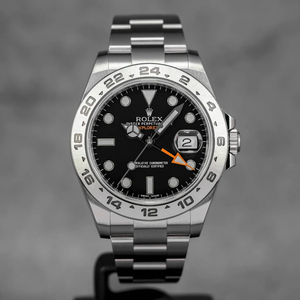 The Explorer was derived from the 1953 Mount Everest expedition. It is designed for explorers who require a rugged yet uncomplicated watch in harsh conditions. Its crisp dial and rugged case make it one of Rolex’s most functional models.